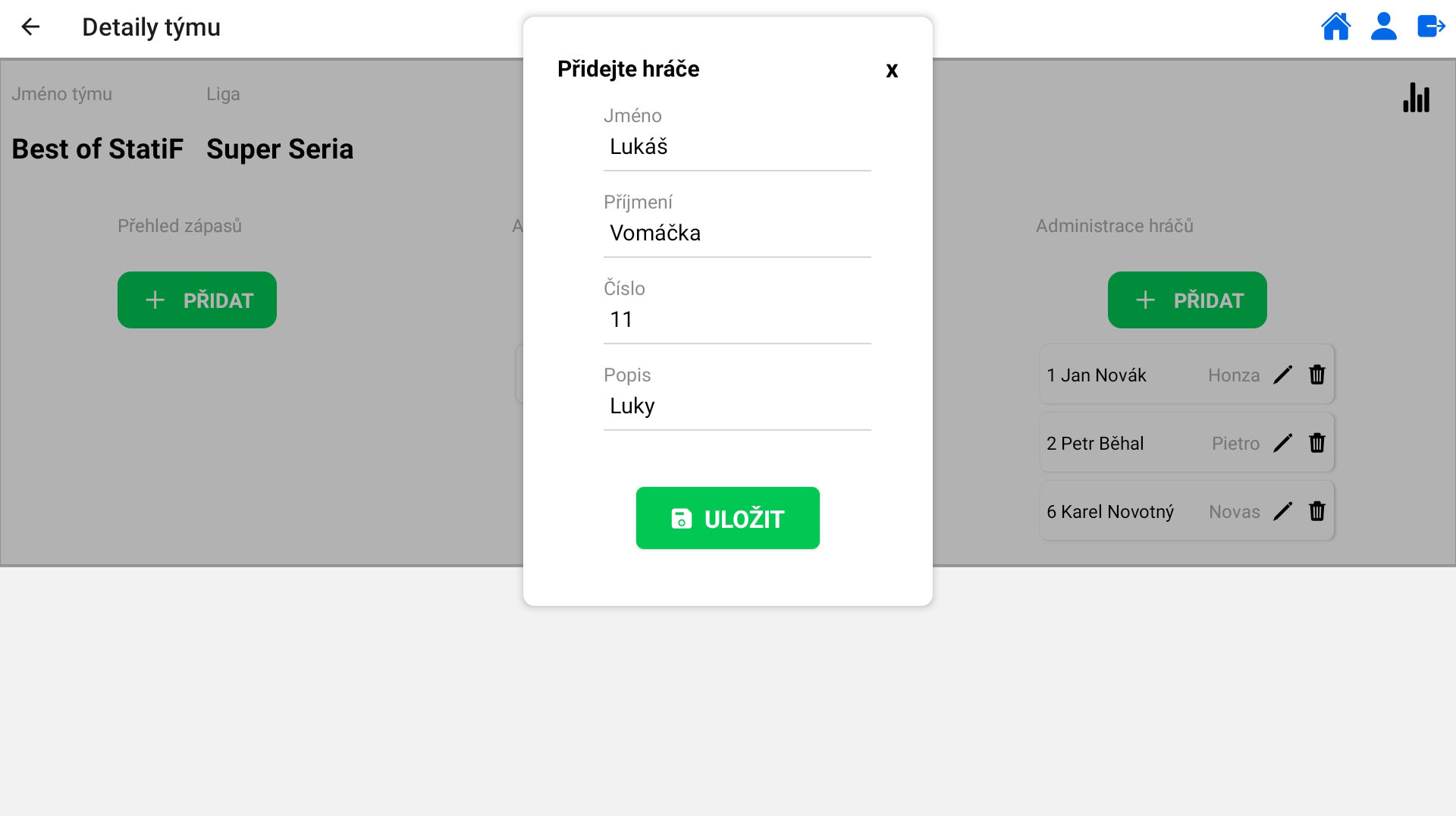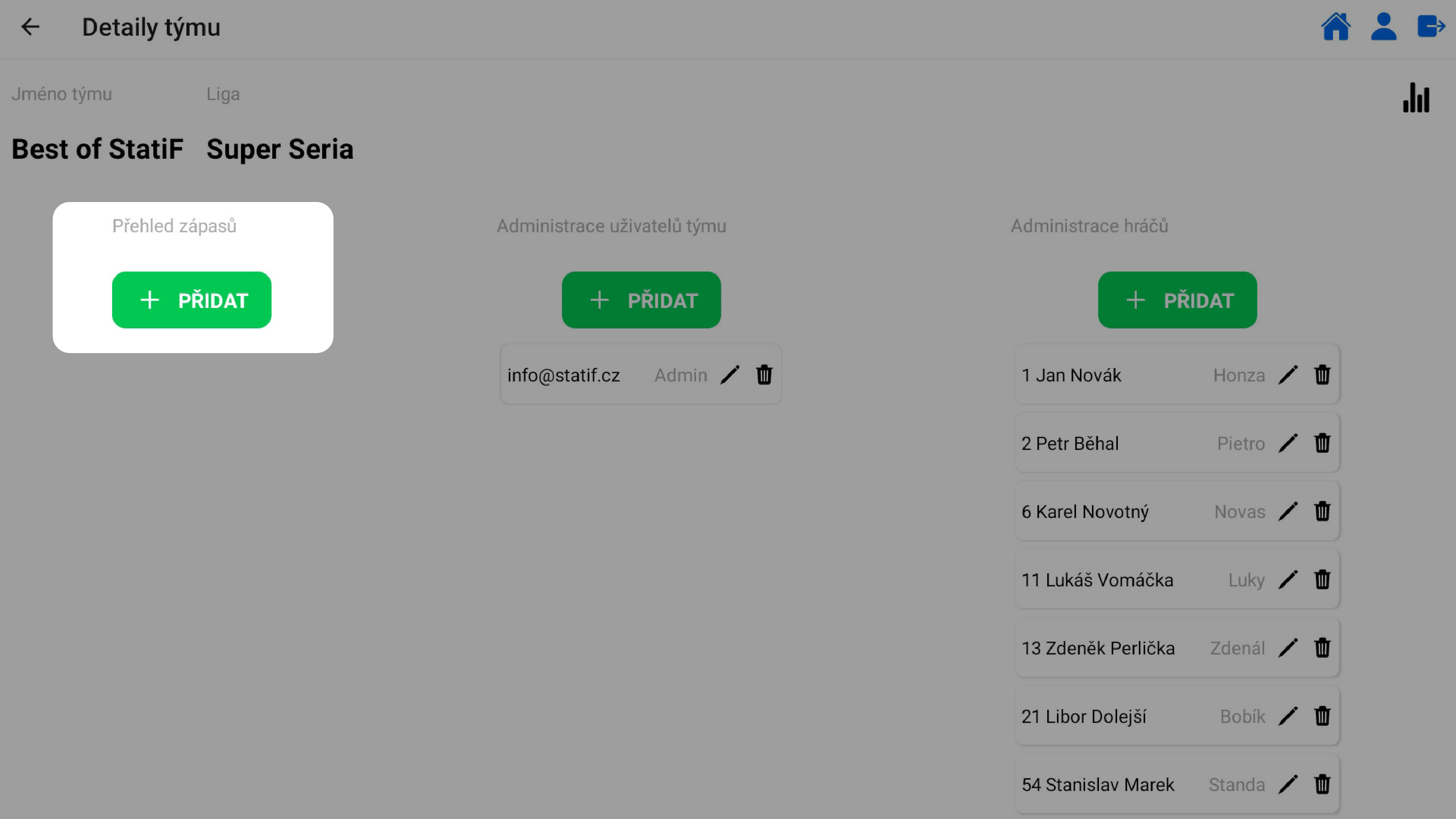 správa hráčů