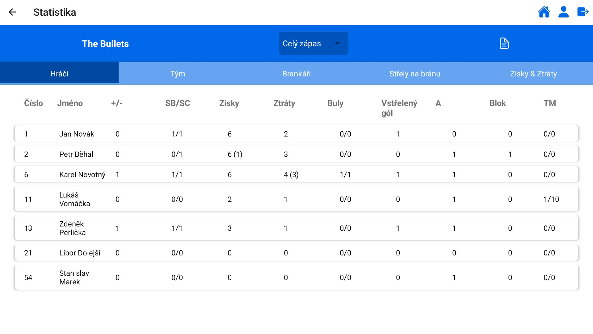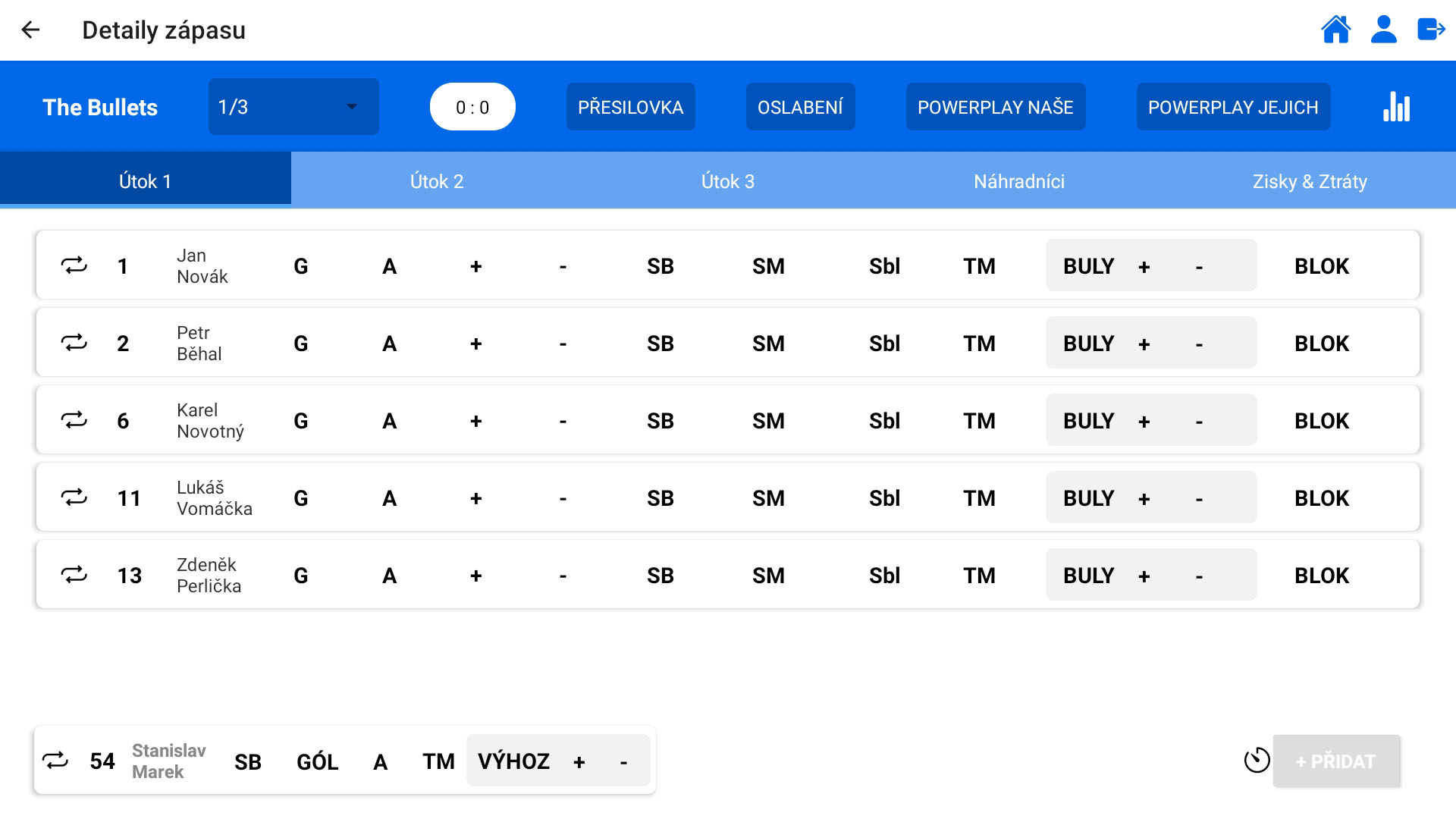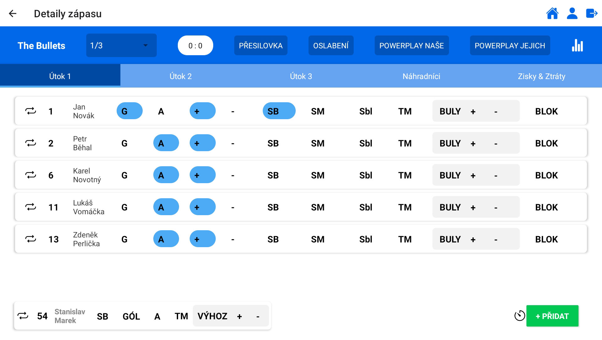 V každém zápase vzniká mnoho různých událostí - góly, asistence, plus/mínus body, střely, vyloučení, zisky, ztráty a mnoho dalšího. Mít možnost zaevidovat každou situaci okamžitě je důležité pro flexibilní rozhodování každého trenéra.