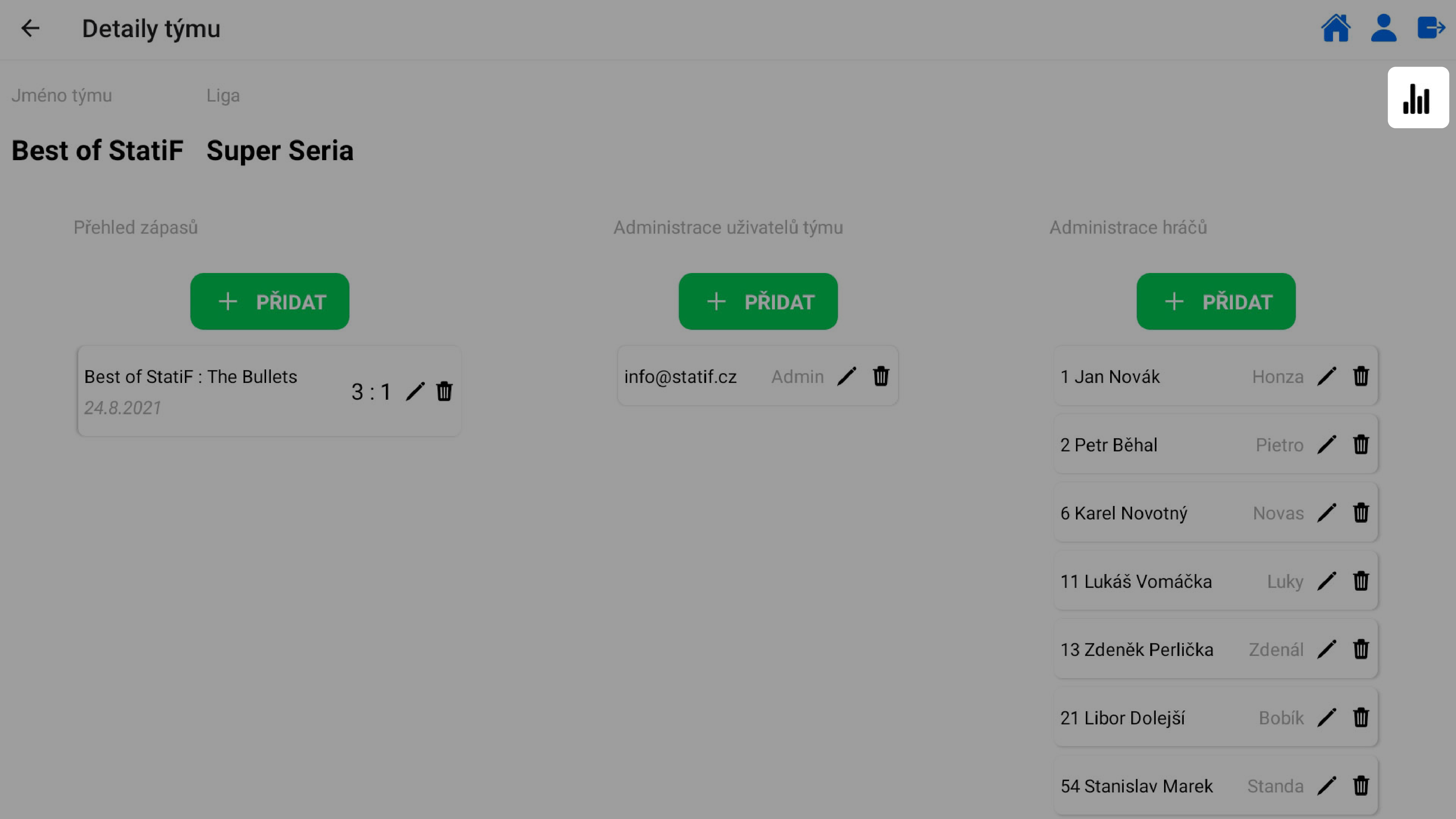 možnost správy více týmů jedním uživatelem